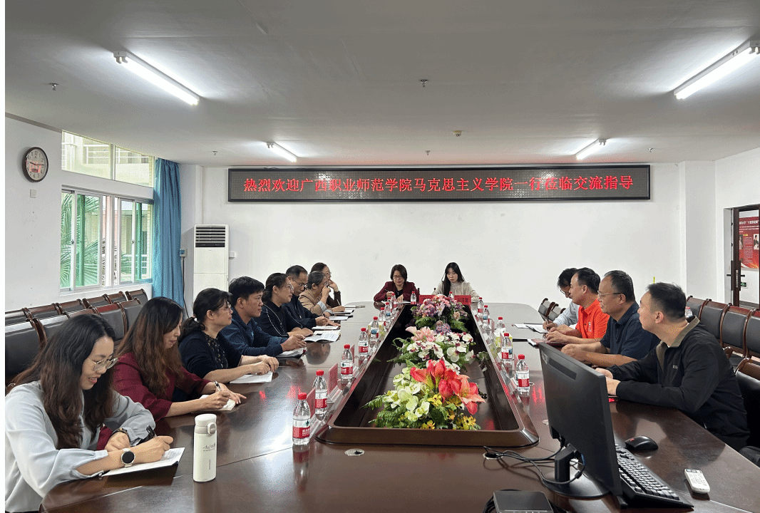 11月13日上午,广西职业师范学院beat365中国唯一官方网站院长陈健萍一行来beat365官网交流调研,并在学院311会议室举行交流座谈会。学院党委书记王大群、党委副书记王群生、副院长(主持工作)王善出席会议。会议由王大群主持。