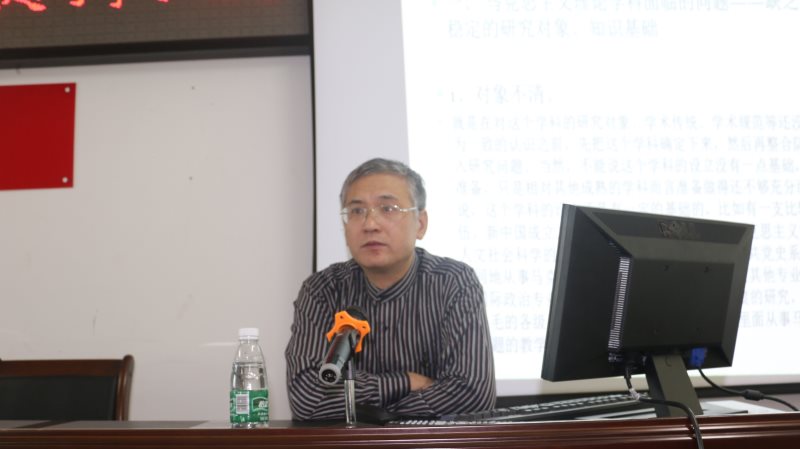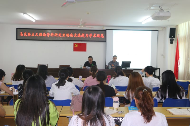 讲座过程中,程教授针对马克思主义理论学科面临的问题进行深入剖析,系统清晰的指出马学科存在研究对象不清、研究队伍专业化有待提升及学术边界模糊等问题。他以马学科知识背景为主线,带领同学们探索并了解本学科研究方向与课程设置情况,最后,程教授立足学科知识基础与价值取向,引导同学们多研读相关书籍并详细讲解论文选题到写作的学术技巧。“做学术也是一种审美!”,程教授渊博的学术见解结合PPT的丰富讲解形式让人获益匪浅,讲座在热烈掌声中圆满结束。