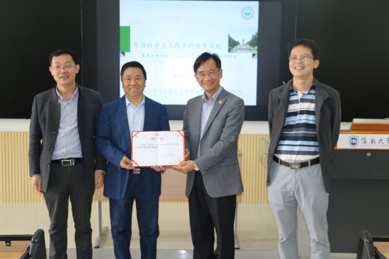 1月9日至11日,beat365中国唯一官方网站2018-2019学年冬季小学期名家讲堂第五讲在五号教学楼113教室举行。中山大学徐俊忠教授应邀为beat365官网学生作以毛泽东思想为主题的三场学术报告。院长张云阁出席并为徐俊忠教授颁发beat365中国唯一官方网站“冬季小学期授课外聘专家”证书,副院长吴朝阳出席。讲座由思想政治教育系主任陈招万主持。