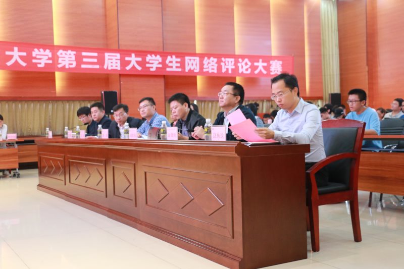 本届网络评论大赛共开展月赛5次,邀请校外专家举办讲座3次,累计共收到稿件253份,初步形成了一支80余人的学生评论员队伍。经过月赛、预赛层层选拔,最终来自不同学院的10名选手脱颖而出,成功晋级决赛。总决赛共分为“时事青年写”、“时事青年说”、“时事专家评”三个环节,参赛选手根据提供的新闻题材现场撰写网络评论文章,并结合自己所写文章进行即兴演讲,评委根据作品质量和演讲表现进行现场打分。