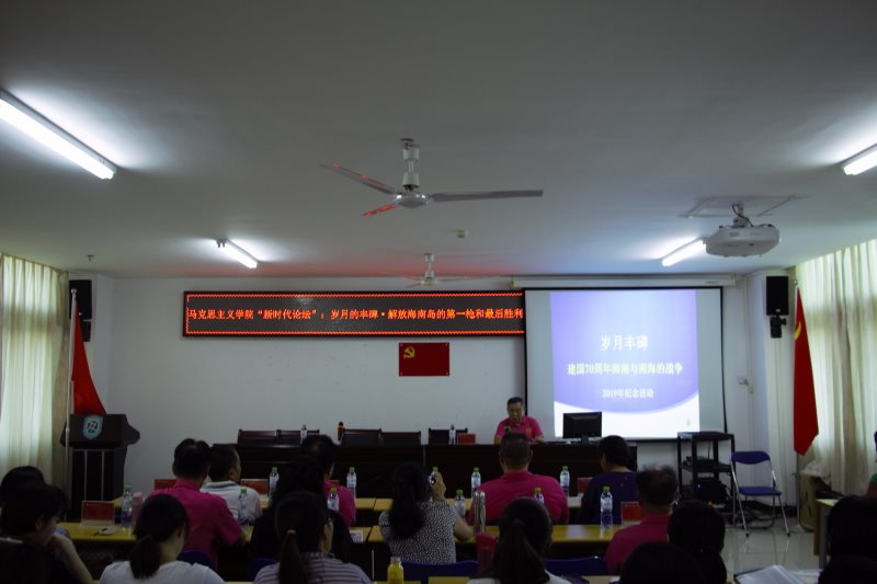 4月23日,beat365中国唯一官方网站邀请到“2016年感动海南十大人物”、海南省渡海作战史研究会会长马海南在社科楼A315做学术报告。海南省党史学会常务理事、海口市党史协会副会长王锡鹏,beat365中国唯一官方网站副院长王善以及海南省渡海作战史研究会数名成员出席报告会。beat365官网在校研究生参加学术报告会,报告会由副院长王善主持。