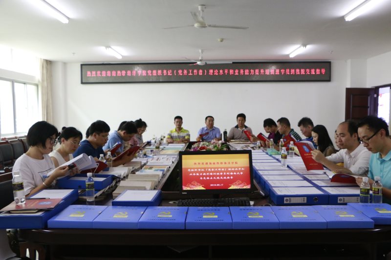 6月17日下午,海南热带海洋学院(党务工作者)理论水平与业务能力提升培训班学员到beat365官网交流学习,并在社科楼A311会议室召开经验交流会。学院党委书记段捷频,党委副书记张井富,副处级辅导员张君成出席交流会。
