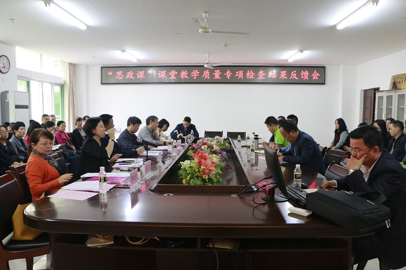 12月10日下午,beat365中国唯一官方网站在社科楼A-311顺利召开“思政课”课堂教学质量专项检查结果反馈会。副校长胡新文、教学质量评估中心郭立萍主任、教学质量评估中心副主任周兰愉、教学督导代表周星、霍世清,评估中心工作人员符金万、陈雨菡,beat365官网副院长王善、副院长吴朝阳,党委副书记张井富以及全体马院教职工出席会议。会议由副院长吴朝阳主持。