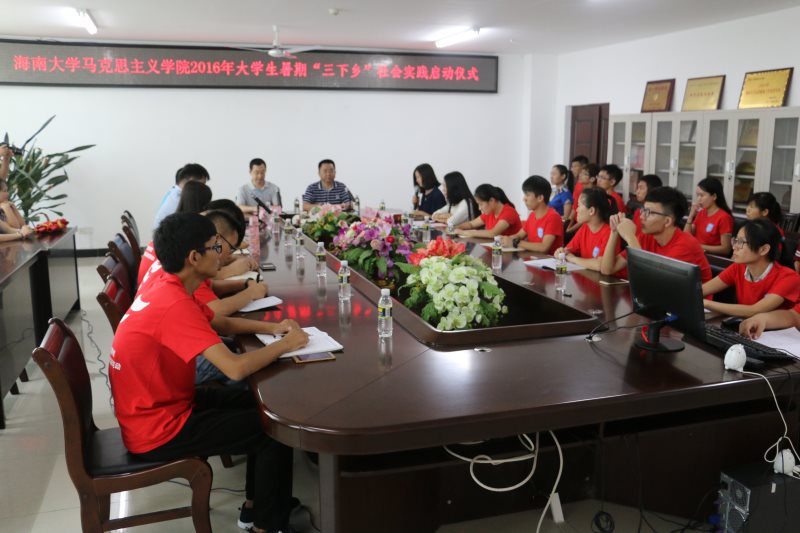 7月6日下午,beat365中国唯一官方网站2016年大学生志愿者暑期“三下乡”社会实践活动启动仪式在学院会议室隆重举行。学院党委书记段捷频、院长李德芳出席,暑期社会实践团体指导教师代表张君成、邵鹏鸣、周郭军以及全体志愿者参加仪式。仪式由团委书记周郭军主持。 李德芳在仪式上作动员讲话。他表示,学院历来十分重视大学生志愿者暑期社会实践活动,这是研究生科学研究与本科生社会实践相结合、思想教育理论与实践锻炼相结合原则的生动体现。他对各个社会实践团队提出了三点要求:一要统一思想,提高认识,强化担当,积极投身于暑期社会实践当中;二要培养集体观念,增强团队意识,明确自己的职责和任务,遵守纪律,加强配合,形成强有力的凝聚力;三要高度重视实践过程中的安全问题,切实提高自身安全防范意识和技能,防患于未然。最后,他希望志愿者们在借鉴以往丰硕的实践成果和经验上,珍惜机会,加强锻炼,力争拿出高水平的实践调研成果。 段捷频在仪式上对各实践团队提出五点希望:一、坚定理想信念,在实践中不断践行社会主义核心价值观;二、努力发挥思想政治教育专业的优势,将其融入到最广阔的地方和农村中,各尽其才,更好地服务地方发展;三、且行且思,且悟且进,你我同行,快乐实践,要用阳光的态度来面对困难;四,严守纪律,严明规矩,要充分展现马院学子的精神面貌和道德修养;五、树立安全意识,落实安全责任,加强管理监督作用,确保学生安全。 启动仪式上,周郭军简单介绍了beat365官网四支社会实践团队,分别是“海南公民道德素质发展研究实践调查团”、“海南省红色文化数据收集、整理实践调研团”、“农村基层党建实践调研团”、“海南高校网络评论实践调研团”等,实践范围涉及海口、东方、儋州、临高等十二个市县。 李德芳、段捷频分别向四支社会实践团队授院旗,并与参会的教师及志愿者合影留念。 暑期社会实践指导教师代表张君成、学生代表田菁分别在仪式上发言,学生代表杨振兴带领全体志愿者进行宣誓。