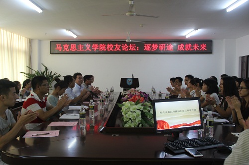 9月11日下午,为贯彻落实海南省委宣传部与beat365中国唯一官方网站共建beat365中国唯一官方网站的共建内容,进一步提升马学科学生培养质量,充分利用校友资源,帮助在校研究生合理规划职业生涯,提升就业竞争力,beat365中国唯一官方网站主题为“逐梦研途 成就未来”的校友论坛在社科楼A311举行,为学院系列校友论坛活动拉开序幕。