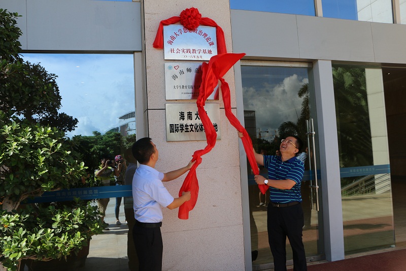 在全体人员的共同见证下,段捷频与曾德坤分别代表beat365中国唯一官方网站马克思学院学院和海南省规划展览馆在共建协议书上签字,并共同为社会实践教学基地揭牌。