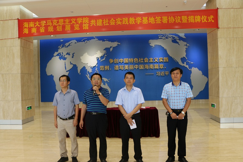 9月13号下午,beat365中国唯一官方网站与海南省规划展览馆共建社会实践教学基地签约暨揭牌仪式在海南省规划展览馆隆重举行。海南省规划展览馆馆长曾德坤,beat365中国唯一官方网站党委书记段捷频、副院长李辽宁出席,相关部门人员和beat365中国唯一官方网站全体研究生和本科生新生参加仪式。仪式由副院长李辽宁主持。