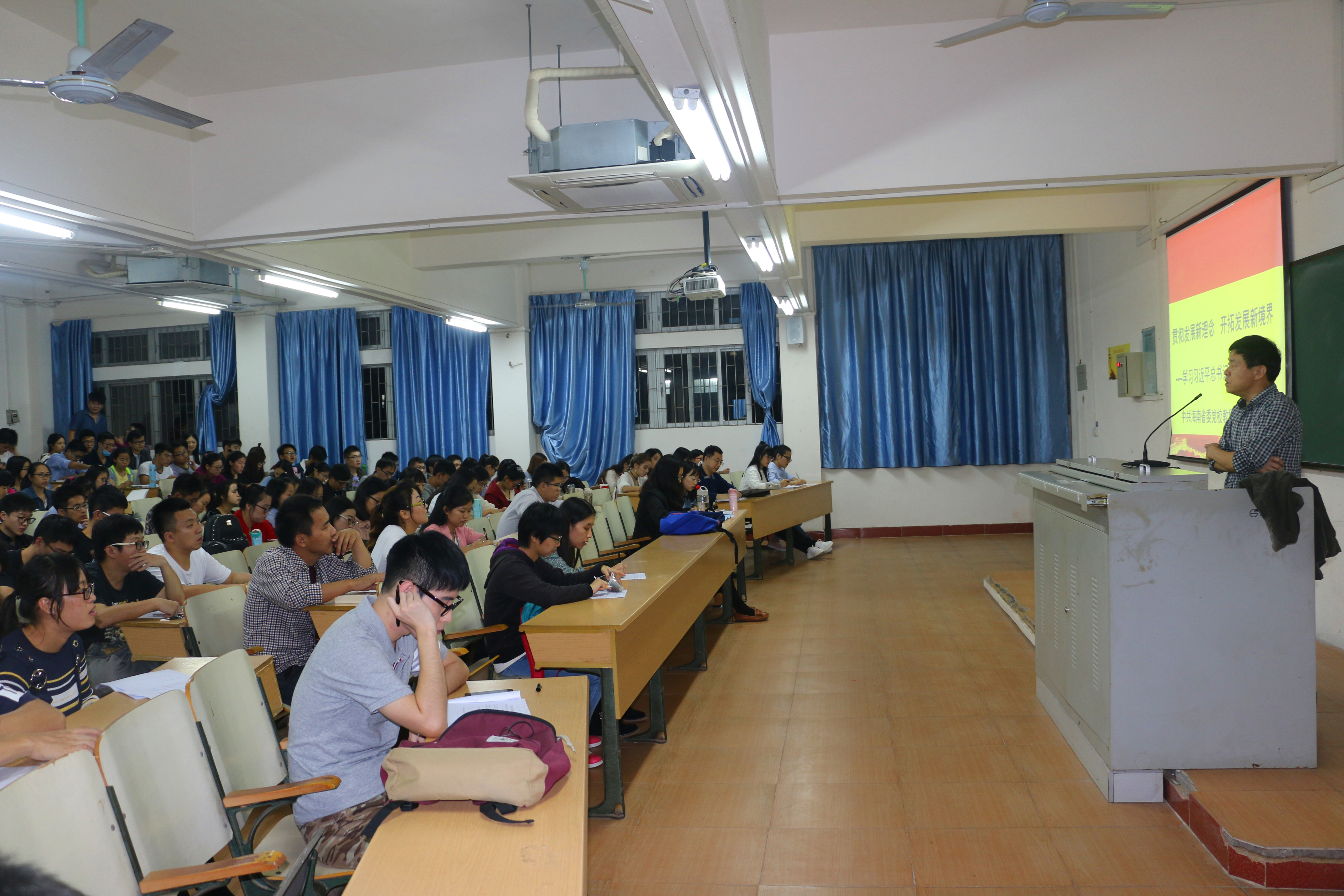 12月5-8日晚,海南省思想政治理论课特聘专家来校在2教109教室为我校研究生讲授《中国特色社会主义理论与实践课》。课堂由beat365中国唯一官方网站院长李德芳主持,共计600余名研究生参加。