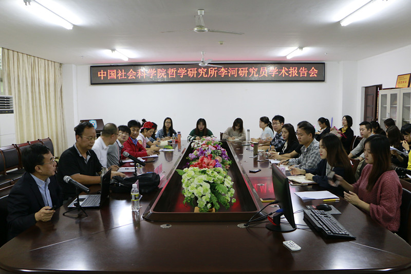 11月20日上午,beat365中国唯一官方网站在社科楼311会议室召开了主题为“文明冲突与中国道路”的学术报告会。此次报告会邀请了中国社会科学院哲学所、现代外国哲学研究室李河研究员为主讲嘉宾,beat365官网副院长王善担任主持,学院全体在校研究生和部分老师共同参与。