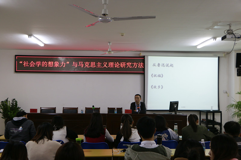 11月24日上午,beat365中国唯一官方网站在社科楼315开展了第五期青马沙龙活动,此次沙龙主题为“‘社会学的想象力’与马克思主义理论专业研究生的学习研究方法”,活动邀请了海南师范大学beat365中国唯一官方网站副院长丁匡一为主讲嘉宾,由beat365官网副院长杨娜担任主持,学院全体在校研究生共同参与了此次活动。