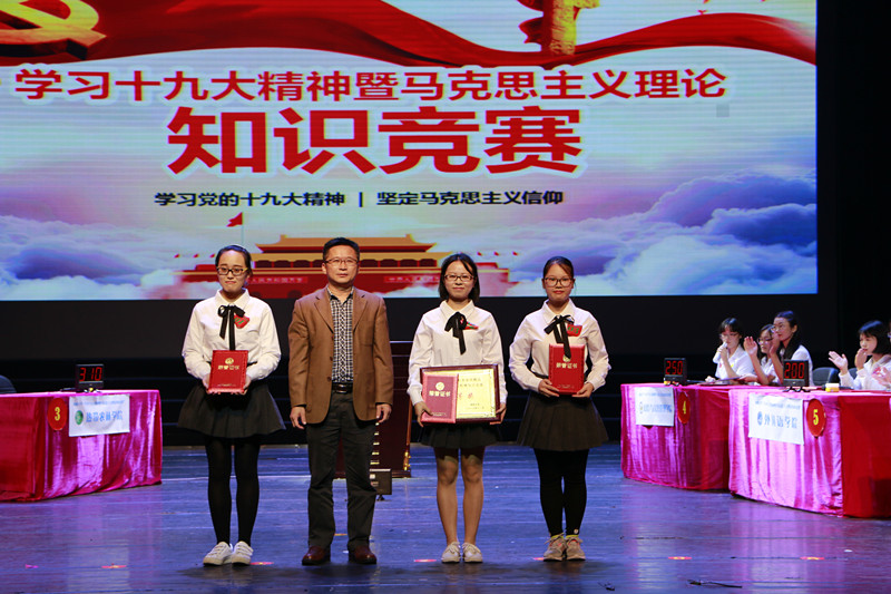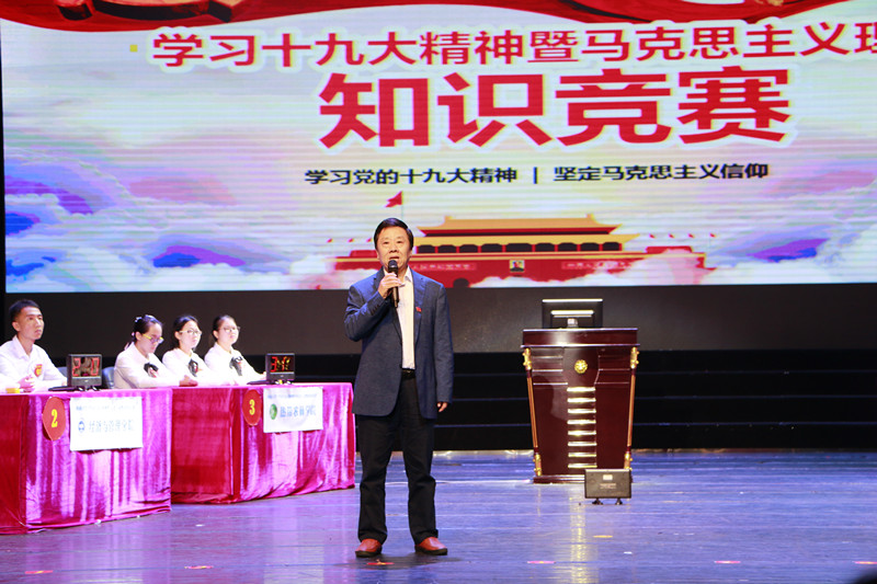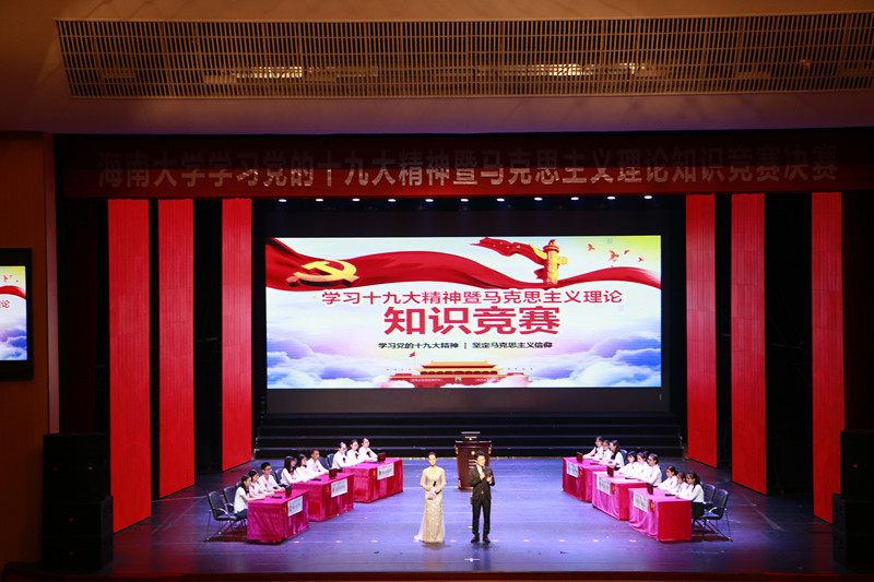 为深入学习贯彻党的十九大精神,11月28日下午,由beat365中国唯一官方网站主办、beat365中国唯一官方网站党委宣传部、beat365中国唯一官方网站、教务处、校团委、学工处联合承办的学习十九大精神暨马克思主义理论知识竞赛决赛在思源学堂大礼堂隆重举行。海南省委宣传部理论处副处长魏如松、海南省社科联部长郭乐新,beat365中国唯一官方网站校党委常委、副校长梁谋,校党委常委、统战部部长陈明宝,学工部部长陈卫东、校团委书记林洪冰、教务处处长张云阁、宣传部副部长许美丹、教务处副处长吴朝阳、beat365中国唯一官方网站院长李辽宁出席活动。