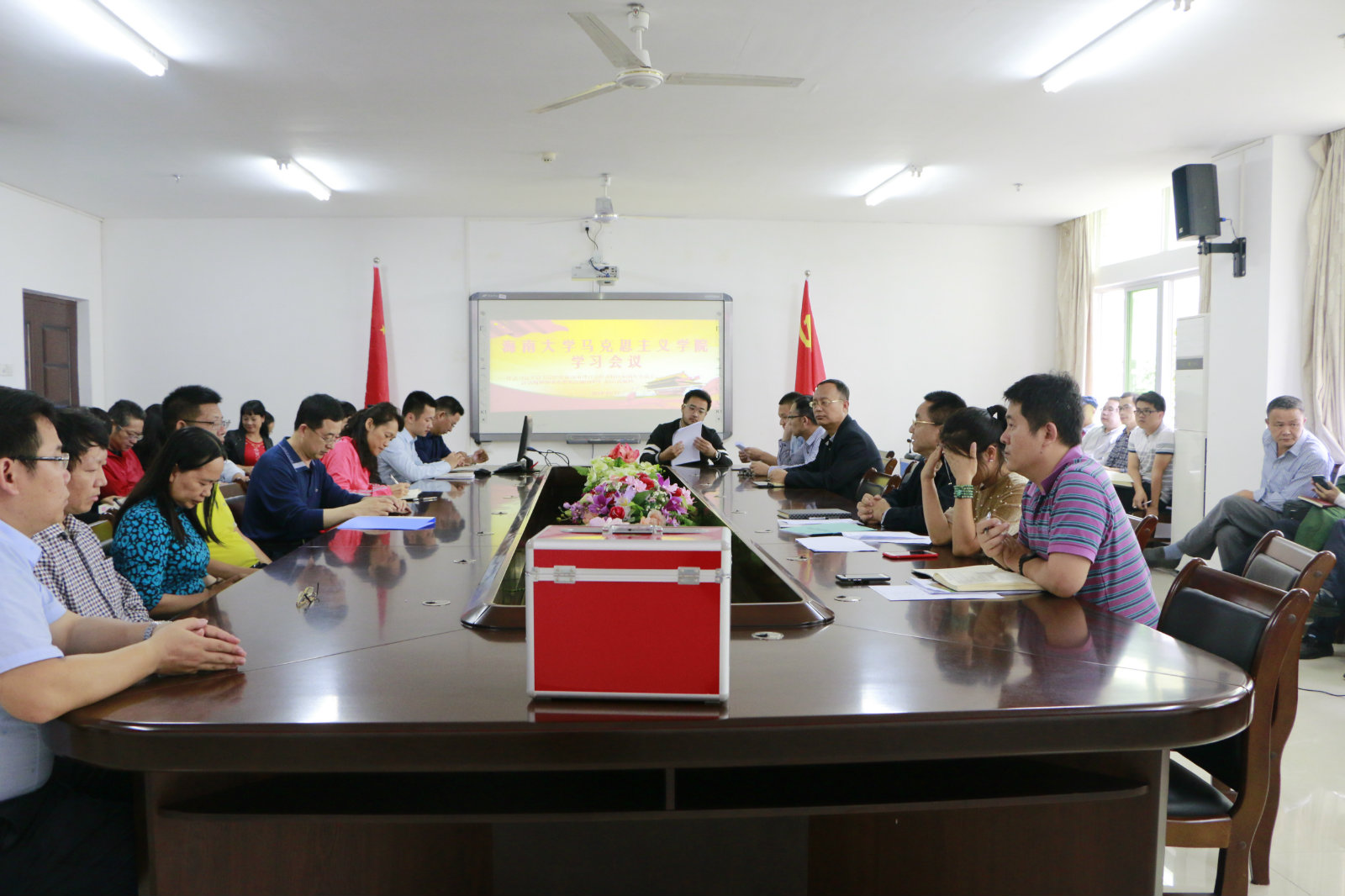 4月17日下午,beat365中国唯一官方网站在学院会议室召开全体教职工大会。会上,院党委书记段捷频传达学习了习近平总书记在庆祝海南建省办经济特区30周年大会上的重要讲话、《中共中央国务院关于支持海南全面深化改革开放的指导意见》和省委常委会(扩大)会议精神,并就各党支部全面开展相关学习活动作出具体安排和部署。