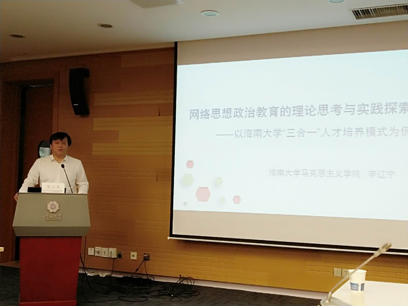 李辽宁以beat365中国唯一官方网站从“课堂教学”、“讲座培训”、“网络大赛”三个方面联合培养网络思想政治教育人才为例,从网络人才培养是时代需求入手,重点介绍了“三合一”人才培养模式的主要内容及做法,总结了网络思想政治教育“三合一”人才培养模式取得的显著成效,得到了与会专家的好评。