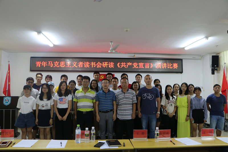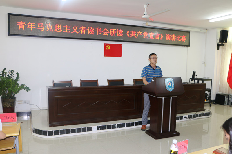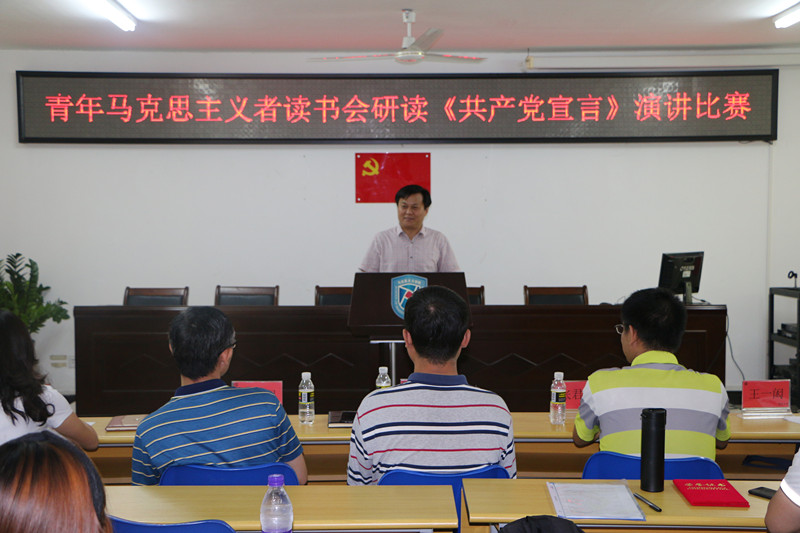 为纪念《共产党宣言》发表170周年,促进广大同学深刻感悟和把握马克思主义真理力量,提升马克思主义理论素养和语言表达能力,beat365中国唯一官方网站青年马克思主义者读书会以重温《共产党宣言》为主题组织研读原著、撰写心得、公开演讲系列活动。5月12日下午,研读《共产党宣言》演讲比赛在社科楼A315隆重举行。beat365中国唯一官方网站院长李辽宁出席活动并讲话,教务处副处长吴朝阳、beat365中国唯一官方网站副院长王善、beat365中国唯一官方网站教师王一闳、张君成、周郭军担任比赛评委。
