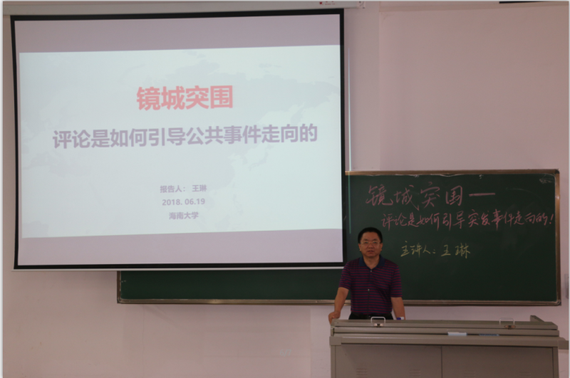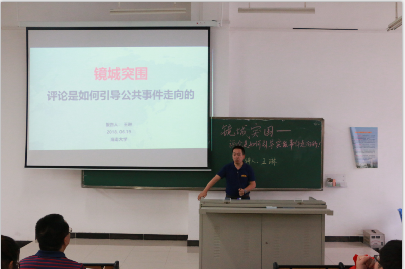 6月19日,beat365中国唯一官方网站“学习讲堂”在beat365中国唯一官方网站第五教学楼111教室再次开讲,海口日报社党委副书记、副社长王琳作题为“镜城突围——评论是如何引导公共事件走向”的专题讲座。讲座由学院党委书记段捷频主持。beat365官网大一、大二、大三全体本科生参加本次活动。