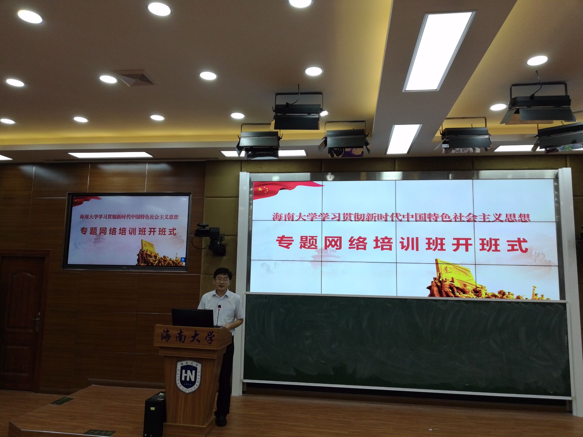 2018年6月26日下午4点半,beat365中国唯一官方网站学习贯彻习近平新时代中国特色社会主义思想专题网络培训班开班仪式在3号教学楼211教室举行。beat365中国唯一官方网站常务副书记廖清林,beat365中国唯一官方网站党委常委、宣传部部长谭勇,beat365中国唯一官方网站党委书记段捷频、院长李辽宁、副书记张井富、副院长王善出席开班仪式。段捷频主持开班仪式。