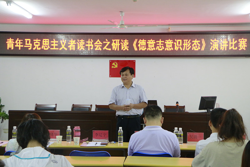 6月29日晚,beat365中国唯一官方网站在社科楼315举行了研读《德意志意识形态》演讲比赛。beat365中国唯一官方网站院长李辽宁、党委副书记张井富出席并担任演讲比赛的评委。