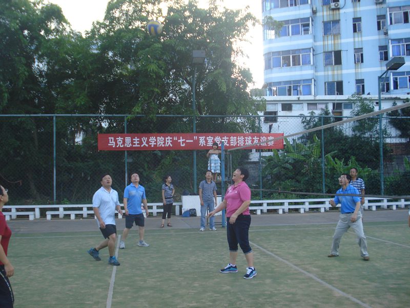 7月2日下午,beat365官网在教工球场举行了一场庆“七一”系室党支部排球友谊赛。交战双方分别是思想政治教育系党支部代表队和行政党支部代表队。