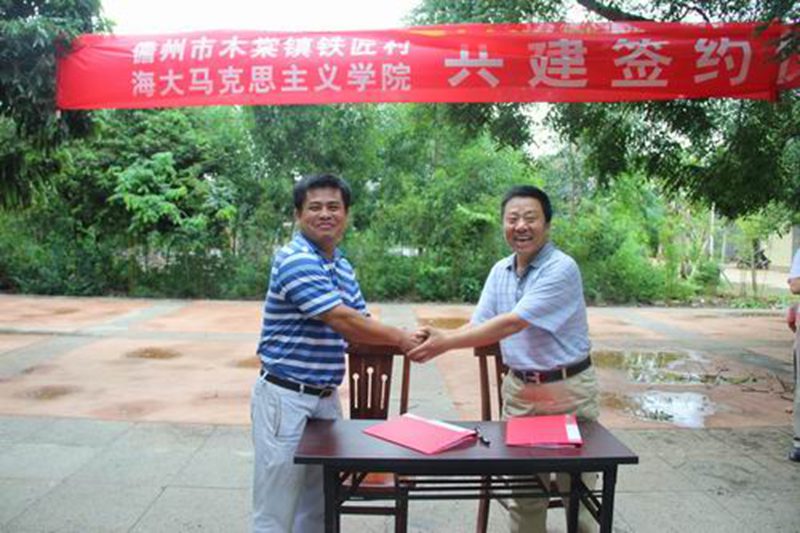beat365中国唯一官方网站张云阁副院长(左)与共青团儋州市委王明魁(右)书记签定“beat365中国唯一官方网站思想政治理论课东坡书院社会实践教学基地共建协议”
