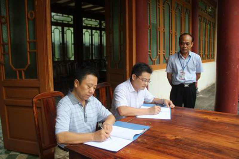 社会实践队伍首先前往东坡书院。上午十点,共青团儋州市委王明魁书记与beat365中国唯一官方网站张云阁副院长在东坡书院迎宾堂前共同签定了“beat365中国唯一官方网站思想政治理论课东坡书院社会实践教学基地共建协议”, 签字仪式由共青团儋州市委李珠副书记主持,王明魁书记和张云阁副院长分别发表了热情洋溢的讲话。随后,beat365中国唯一官方网站张朔人教授现场为学生作了50分钟题为“苏东坡海外事迹与海南‘客贤’记忆”的精彩演讲,演讲不断被学生热烈的掌声所打断。现场教学结束后,内导引领学生在东坡书院园区进行了实地参观考察。