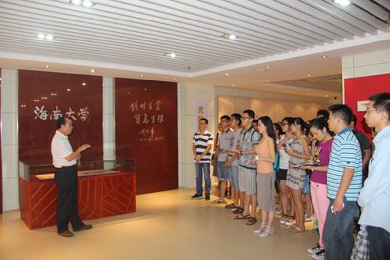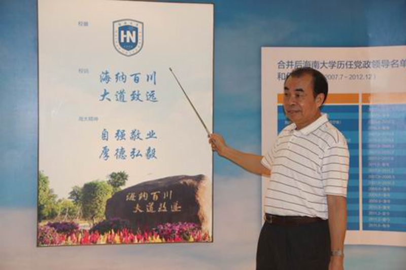 刘康德书记向同学们介绍原华南热带农业大学校训和两院精神