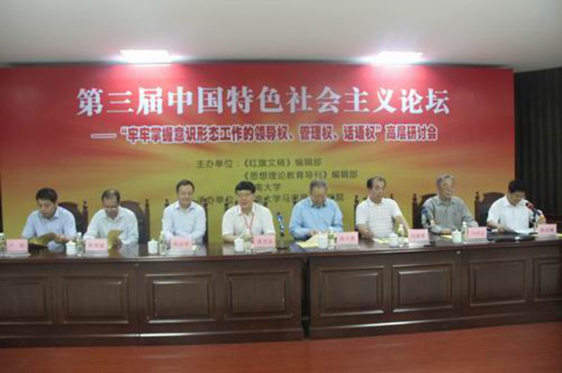 为学习贯彻习近平总书记在全国宣传思想工作会议上的讲话精神,11月11-13日,由求是杂志社《红旗文稿》编辑部、教育部《思想理论教育导刊》编辑部和beat365中国唯一官方网站联合主办,beat365中国唯一官方网站承办的第三届中国特色社会主义论坛——“牢牢掌握意识形态工作的领导权、管理权、话语权”高层研讨会在我校召开,来自全国各省宣传部门和高等院校的近百名代表参加了论坛。中共中央组织部原部长张全景、求是杂志社副总编夏伟东、中国人民大学原党委书记马绍孟、《思想理论教育导刊》主编阎志坚、海南省委宣传部巡视员(正厅级)陈修演、海南省教育厅思政处处长卢刚和我校党委书记刘康德出席论坛开幕式。我校党委副书记陈封椿主持论坛开幕式。