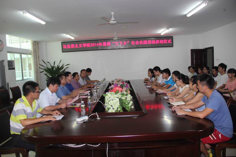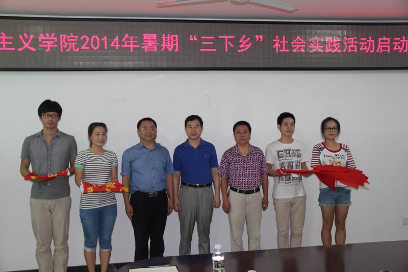 7月9日上午,beat365官网在学院会议室举行2014年大学生暑期 “三下乡”社会实践活动启动仪式。院长李德芳、院党委书记段捷频、副院长张云阁,社会实践团队带队老师李辽宁、王善、张君成出席,全体参加社会实践团队的同学参加启动仪式。仪式由王善老师主持。 李德芳院长在仪式上作动员讲话。他说,学院高度重视大学生暑期社会实践活动,学院老师结合自己的在研课题,积极组织 暑期社会实践团体,为活动的深入开展提供了强有力的支持。在同学们的积极参与和相关老师的精心指导下,beat365官网大学生暑期社会实践每年都取得了比较好的成果,并形成了一些好的做法和传统。他对参加社会实践团队的同学们提出了四点要求,一是要树立集体观念、培养合作意识、发扬团结协作精神;二是要深入基层、深入农村,为群众服务、向群众学习;三是要结合专业特点提升志愿服务水平,形成高水平的社会实践成果;四是要高度重视安全问题。最后,他希望同学们珍惜机会,真正在实践的过程得到锻炼和成长,并力争拿出一些高水平的实践调研成果。 社会实践团体指导教师代表李辽宁老师、暑期社会实践学生代表李飒楠同学分别在仪式上发言,参加社会实践团队的全体同学进行了宣誓。 在启动仪式上,院长李德芳、院党委书记段捷频、副院长张云阁分别向四支社会实践团队授院旗。今年暑期的四只社会实践团队分别是:红色文化资源调研与老区支教社会实践团、“ 海南省公民阅读现状”实践调查团、“海南黎苗旅游村寨保护与开发”实践调查团、“海南红色文化实践育人功能”实践调查团。