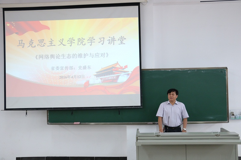 4月12日下午,省委宣传部、省互联网信息办公室网络新闻管理处处长、省互联网与信息化安全专家史盛东应邀为beat365官网研究生和本科生作题为“网络舆论生态的维护与应对”的专题报告。省委宣传部理论处副处长杨志斌,beat365中国唯一官方网站宣传部王群生,beat365中国唯一官方网站党委书记段捷频及部分老师旁听报告。报告会由李辽宁副院长主持。