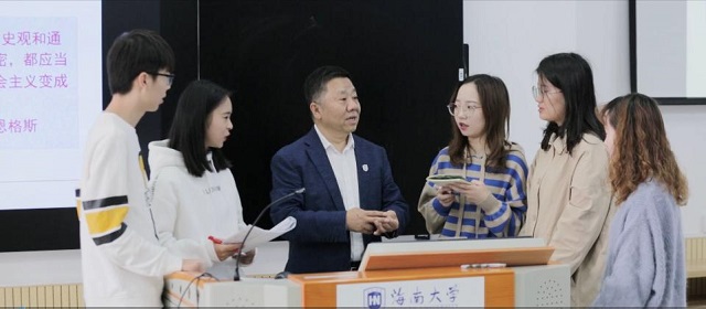 张云阁要求马院的教师在这学期的思政课教学中要聚焦疫情阻击战中的人与事,把疫情阻击战中发生的可歌可泣的动人故事及时融入课堂教学中去,让思政小课堂与社会大课堂同频共振。从学生的调查问卷看,学生对思政课教学非常满意。2018级生物科学技术专业的张子赫同学说:“网上教学不仅更方便了我们的学习与思考,而且老师还能够及时将抗疫中的英雄事迹作为案例融到教学中去,使我感到很有说服力。”