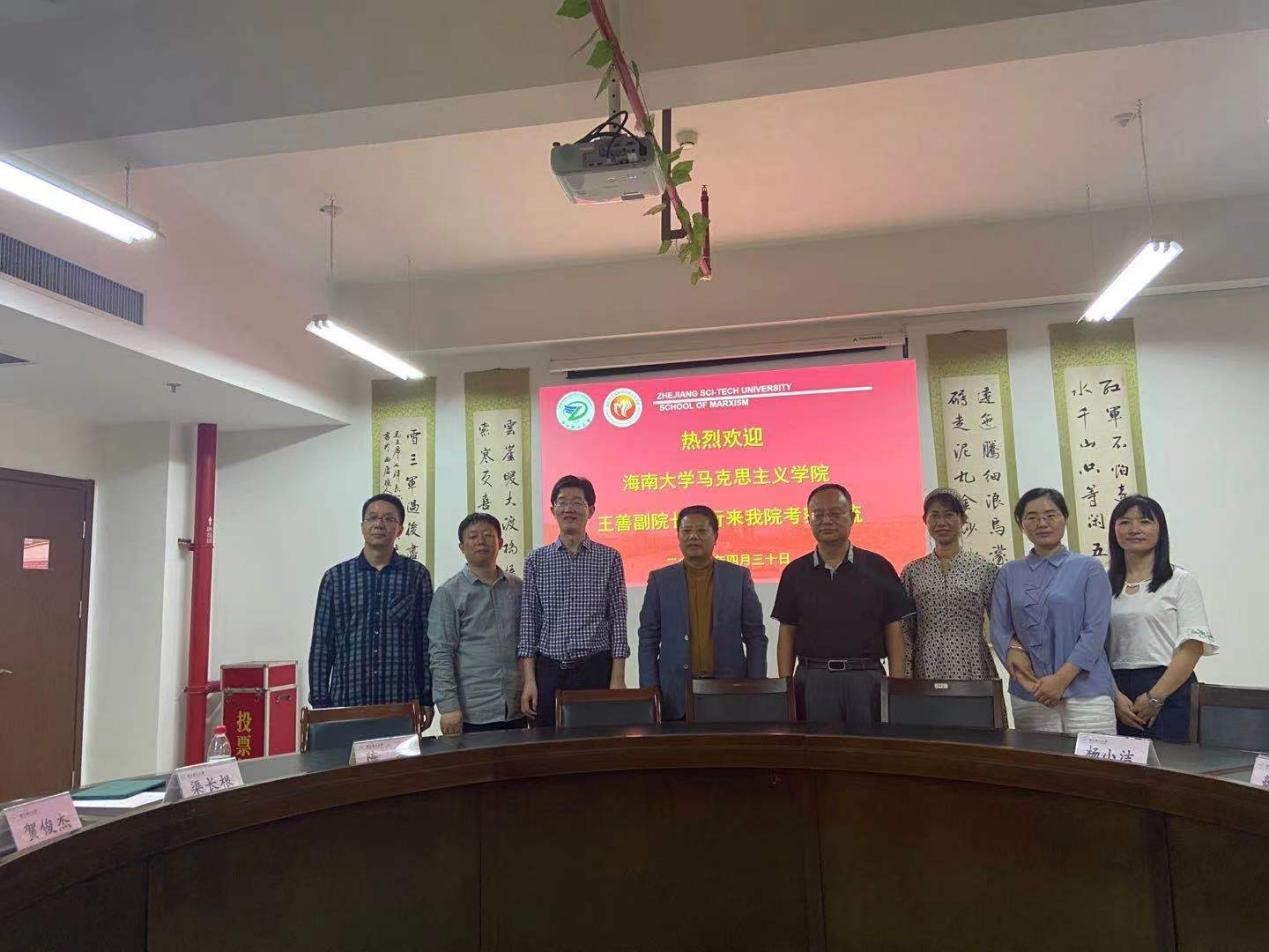 为贯彻落实中共中央办公厅、国务院办公厅印发的《深化新时代学校思想政治理论课改革创新的若干意见》、《新时代学校思想政治理论课改革创新实施方案》相关精神,进一步推进学院思政课改革创新工作,beat365中国唯一官方网站副院长王善一行5人于4月29日—5月1日赴浙江工商大学、浙江理工大学就集体备课、课程改革、实践教学等进行调研交流。