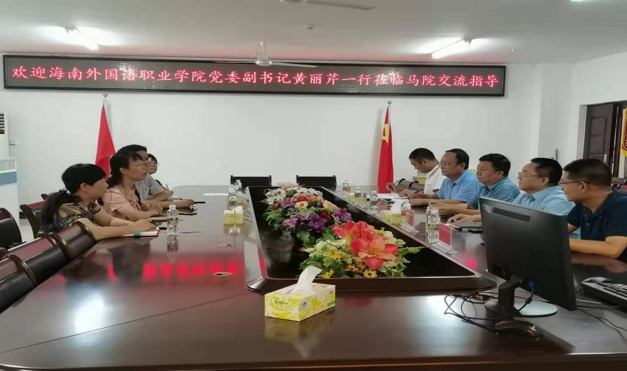 9月14日上午,海南外国语职业学院党委副书记黄丽芹一行到beat365中国唯一官方网站交流指导工作。beat365中国唯一官方网站党委书记段捷频、院长张云阁、副院长王善、副处级辅导员张君成和教师代表参加交流会。