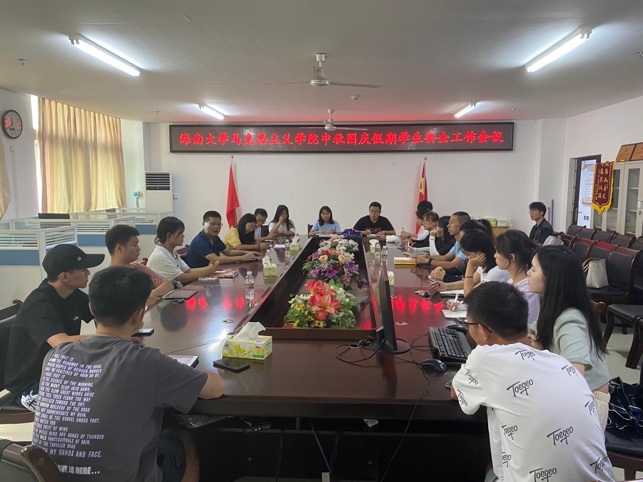 会上,张君成传达了《海南省教育厅办公室关于切实做好中秋国庆假期校园安全防范工作的通知》和学校相关会议精神,对两节期间学院学生安全工作做具体工作部署。