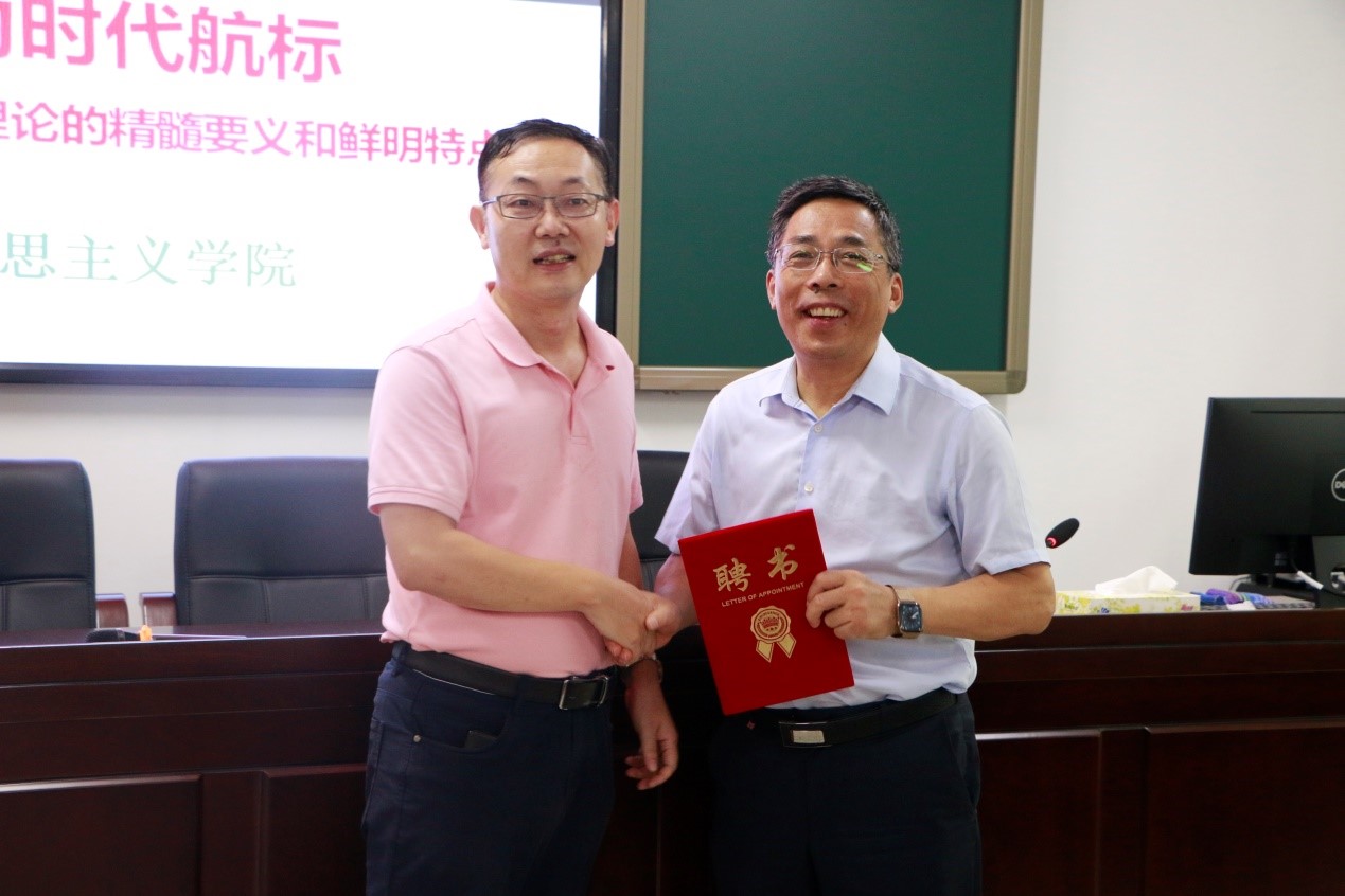 9月29日上午,beat365中国唯一官方网站2021-2022学年冬季小学期系列讲堂第一讲在社科楼A309举行。南京师范大学王永贵教授应邀为beat365官网学生作以“习近平总书记文化强国理论及鲜明特点”为主题的学术报告,副院长吴朝阳出席报告会并为王永贵教授颁发beat365中国唯一官方网站“冬季小学期授课外聘专家”证书。