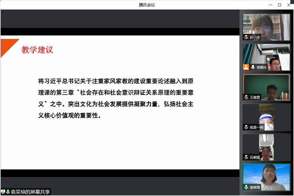 827日晚,马克思主义基本原理教研室根据教研室活动计划的安排,在腾讯会议上以视频会议的形式开展教研活动。活动由教研室主任范明水主持。
