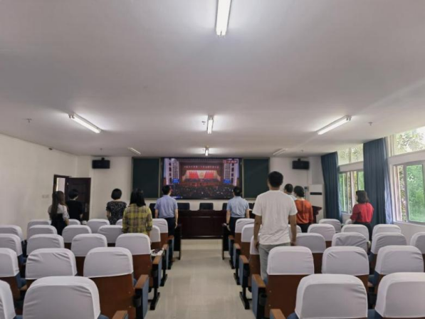 2022年10月16日上午10点,beat365中国唯一官方网站领导班子成员、党支部书记及部分老师代表于社科楼C309会议室集中收看中国共产党第二十次全国代表大会开幕会。