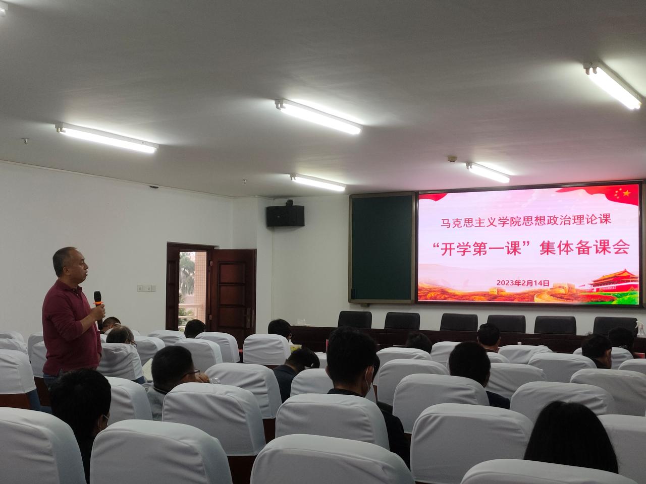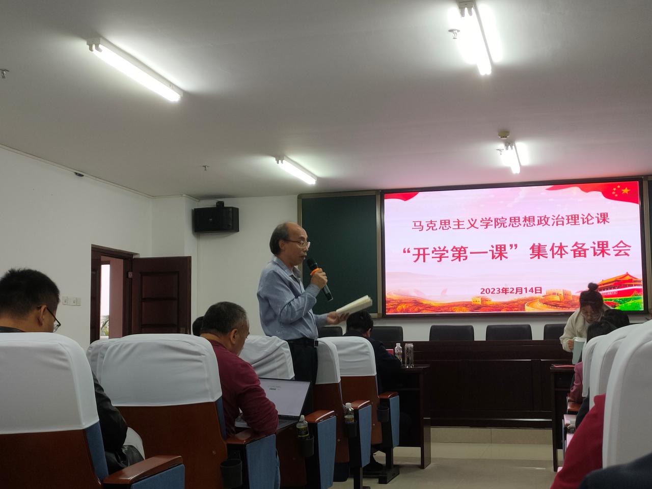 会议第一个阶段,学院副院长王善传达学习了教育部、省教育厅等有关组织开展2023年春季学期“开学第一课”活动的文件精神和相关要求,安排了学院本学期思政课集体备课等工作。