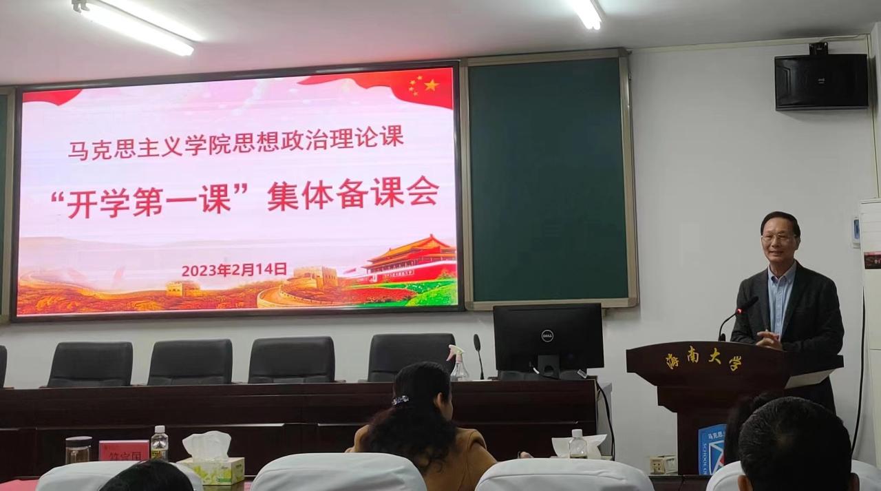 2023年2月14日下午,为深入学习宣传贯彻党的二十大精神,更好地发挥思政课在落实立德树人根本任务中的关键作用,进一步提升思政课教学质量,beat365中国唯一官方网站召开思想政治理论课“开学第一课”集体备课会。校党委书记符宣国、校党委常委、副校长梁谋、校党委常委、宣传部部长韩淑梅出席;学院领导班子、全体思政课专任教师和书院“形势和政策”课部分教师参加。学院教学督导委员会主任、学院教学委员会副主任贺尧夫老师主持。
