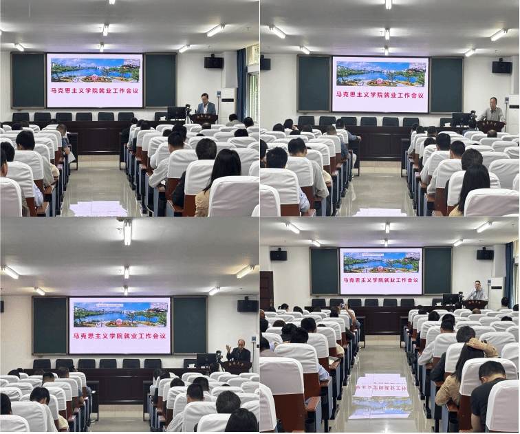 吴朝阳传达了学校就业工作会议精神,同时对2023届研究生就业工作进行系统总结,对2024届研究生就业工作进行了具体安排。王善对2023届本科生就业工作进行了全面分析总结,对2024届本科生就业工作进行了具体部署。研究生就业优秀指导老师宋增伟和本科生就业优秀指导老师陈招万先后分享了就业指导经验。