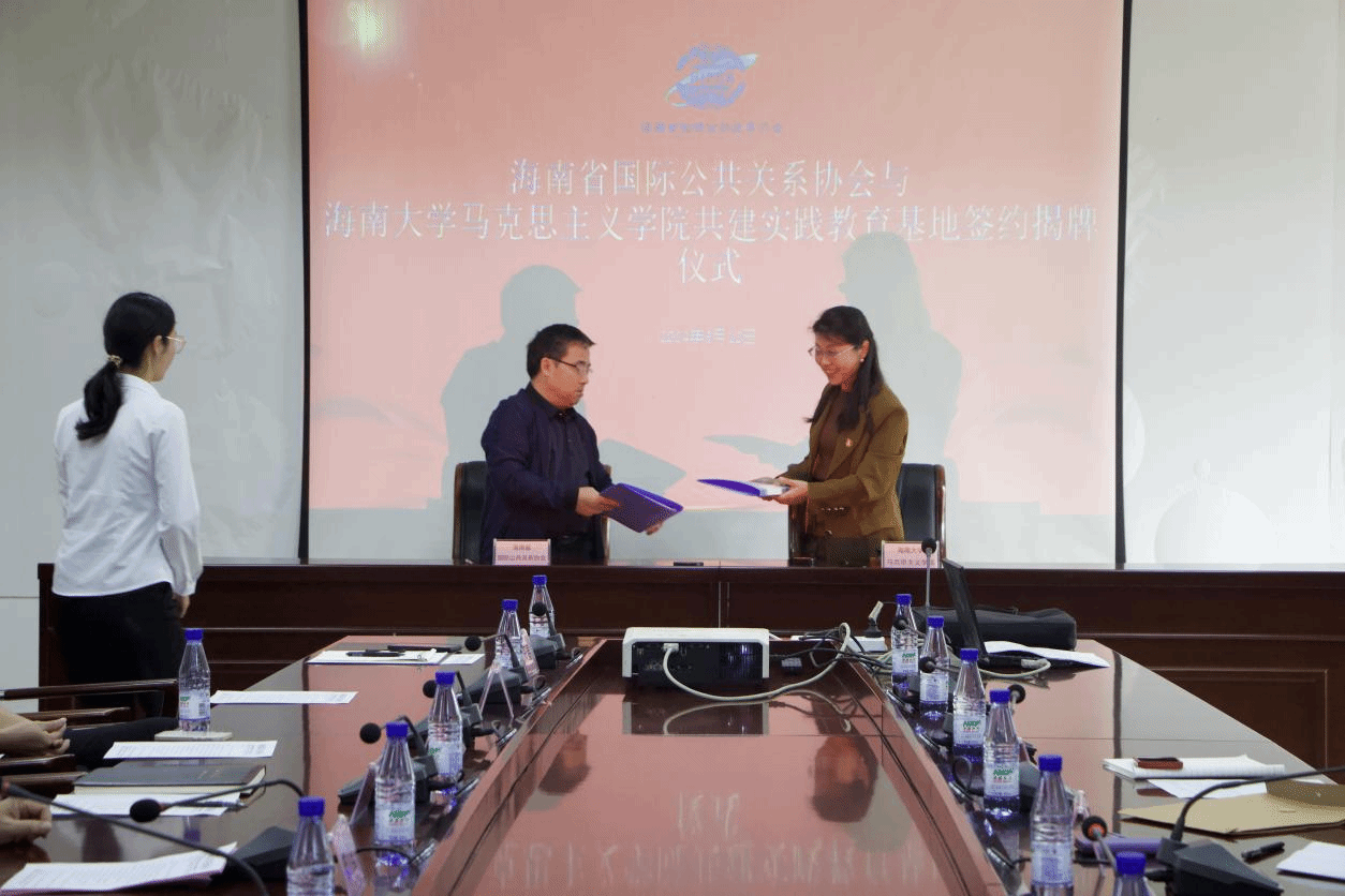 2024年3月12日下午,在农垦总局西大院举行beat365中国唯一官方网站实践教育基地的签约揭牌仪式,海南省国际公共关系协会会长伍星、副会长周世林、beat365中国唯一官方网站执行院长杨娜、副院长王善、教师王宇旭、龙借琼、海南省国际公共关系协会会员代表以及beat365中国唯一官方网站学生参与此次揭牌仪式,副会长周世林担任此次签约揭牌仪式主持人。
