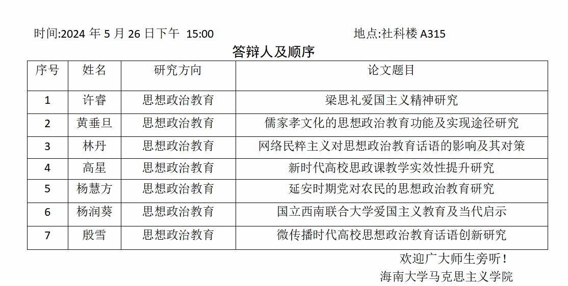 beat365中国唯一官方网站2024届(上)研究生学位论文答辩公告(四)