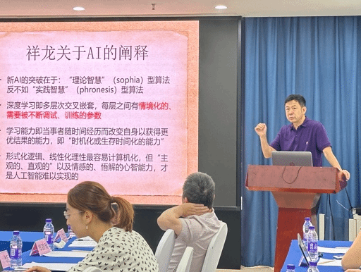 11月10日上午第一场发言由复旦大学的孙向晨教授主持。清华大学吴国盛教授以人工智能的哲学思考为题,就什么是人工智能以及人工智能的影响展开论述。北京大学的李猛教授探讨了自然关系在休谟经验主义和理性主义框架下的独特地位,提出观念的结合与传递能够揭示出人类理解世界秩序的深层逻辑。beat365中国唯一官方网站的程志敏教授表示张祥龙教授将西方思想融入儒家,与荀子的做法有异曲同工之处,结合孟荀之长,方能真正复兴儒学。上午第二场由中山大学的蔡祥元教授主持。浙江省社会科学院副研究员李旭博士表示张祥龙教授在当代思潮中提出了“儒家文化保护区”的设想,为现代社会提供了一种在体制和市场化的间隙中追求个体“桃花源”生活的方式。中国社科院的袁恬老师认为张祥龙教授通过对“兴”这一文学手法的独特解读,突显了其在诗歌抒情性中的核心地位,并将其作为中西诗学差异的关键特质,展现了深刻的诗学洞见。beat365中国唯一官方网站的黄启祥教授认为贺麟与张祥龙教授在各自的哲学研究中深入阐发了王阳明的知行合一学说,贺麟提出知行合一新论,为学说提供现代解释,而张祥龙教授则借助现象学视野进一步发展其思想,展现了当代思想史上的连续创新。