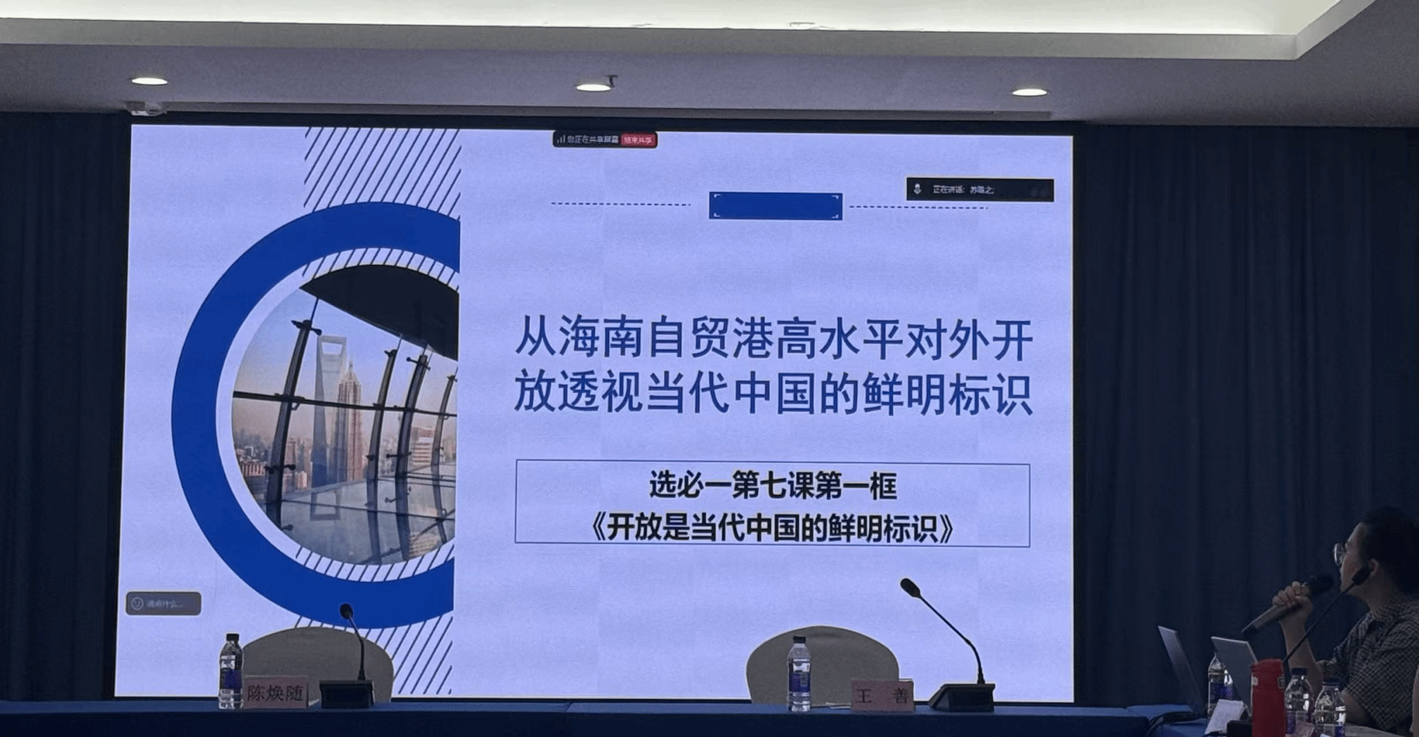 来自beat365中国唯一官方网站等四位老师围绕“高水平对外开放在海南自贸港的创新实践”进行了“同题异构”教学展示。上海师范大学附属儋州实验学校的吴丽贞老师通过与AI小椰对话形式,让课堂在生动活泼的氛围中实现了知识的传递;东方市铁路中学的杨宗舒老师用“知信行”的理念践行国家战略到个人行动的落实;临高县临高中学的陈莹老师用“我与自贸港”,从小案例到海南上升至国家,诉说了不是“追随者”,而应是“引领者”的青年责任;beat365中国唯一官方网站的安睿颖老师以“是什么、为什么、怎么做”贯穿,“国际循环和国内循环”的供需为理论抓手,用“围棋布局”思维,讲述了国家战略到海南实践的制度指引与实践创新之路。