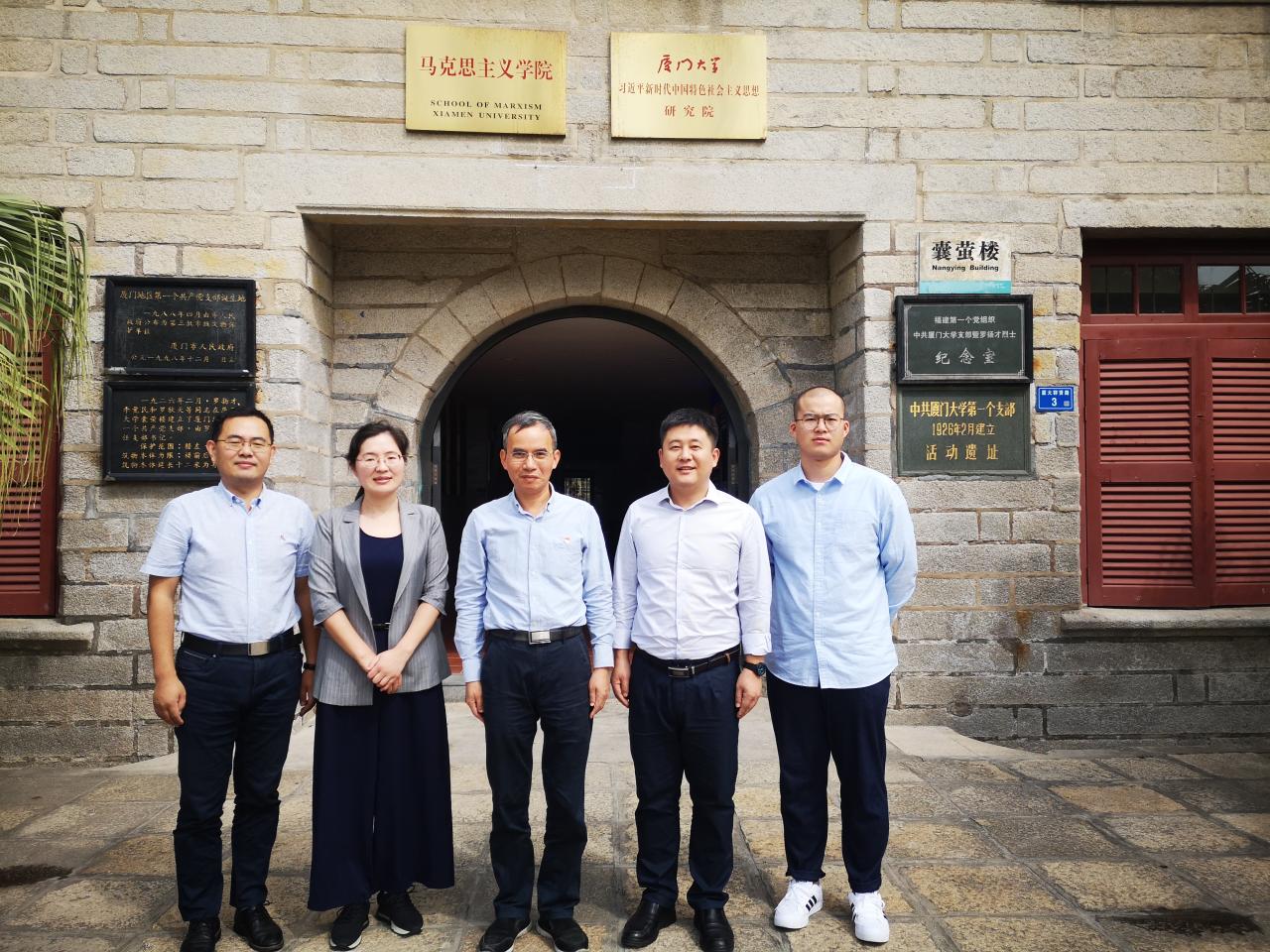 11月1-4日,院党委副书记张井富、思想道德修养与法律基础教研部党支部书记蒋玉、研究生党支部副书记原广一行到厦门大学beat365中国唯一官方网站学习交流。厦门大学beat365中国唯一官方网站党委书记侯利标介绍了学院党委基本情况,特别是学院实施“四项工程”,创建“全国党建工作标杆院系”的做法及探索。在福建师范大学beat365中国唯一官方网站,党委书记张爱民、组织委员陈玉玲等人参加座谈交流会,张爱民书记带领大家实地考察了学院理论学科群展览馆,并详细介绍了学院党建工作的特色项目。