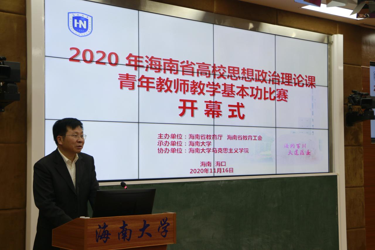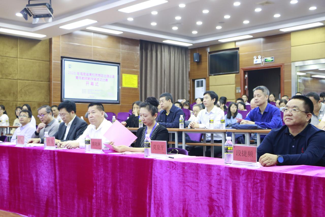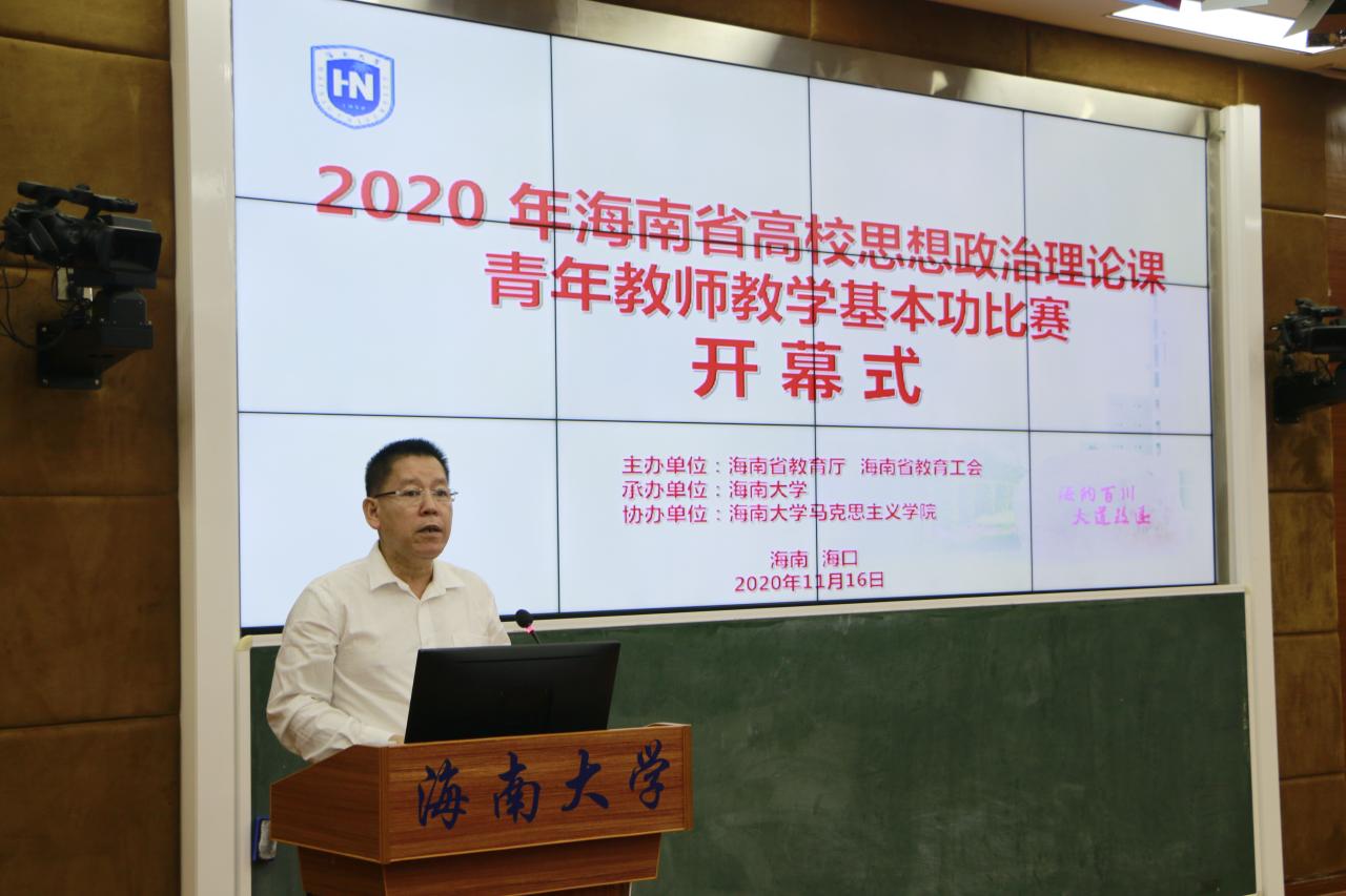 11月16-17日,由海南省教育厅、海南省教育工会主办,beat365中国唯一官方网站承办,beat365中国唯一官方网站协办的海南省高校思想政治理论课青年教师教学基本功比赛在beat365中国唯一官方网站举行。海南省教育厅二级巡视员范敏,海南省教育工会专职副主席方鸣,beat365中国唯一官方网站党委常委、副校长曹宪忠出席开幕式。来自全省各高校的43位选手参加比赛,100多名教师现场观摩。